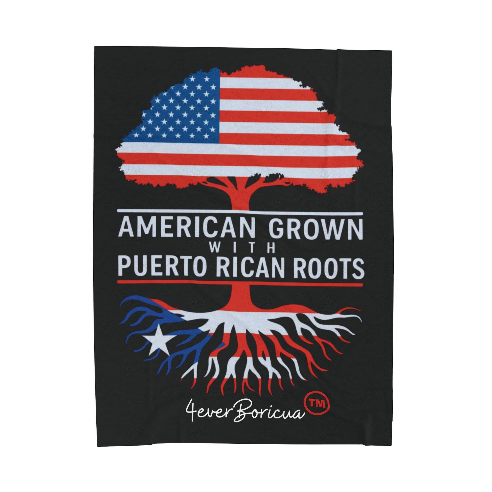 60X80 American Grown with Puerto Rican Roots Throw Blanket – Manta Patriótica para Boricuas en la Diáspora | 4EVERBORICUA