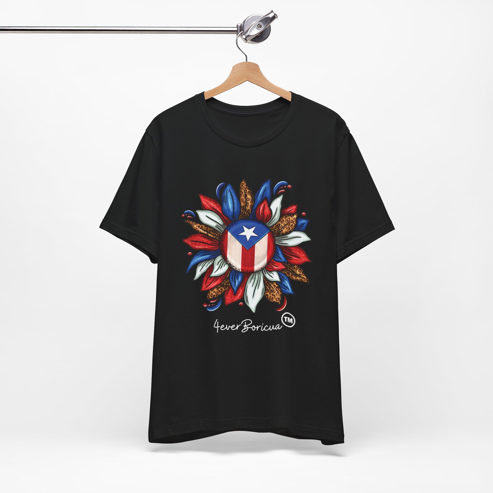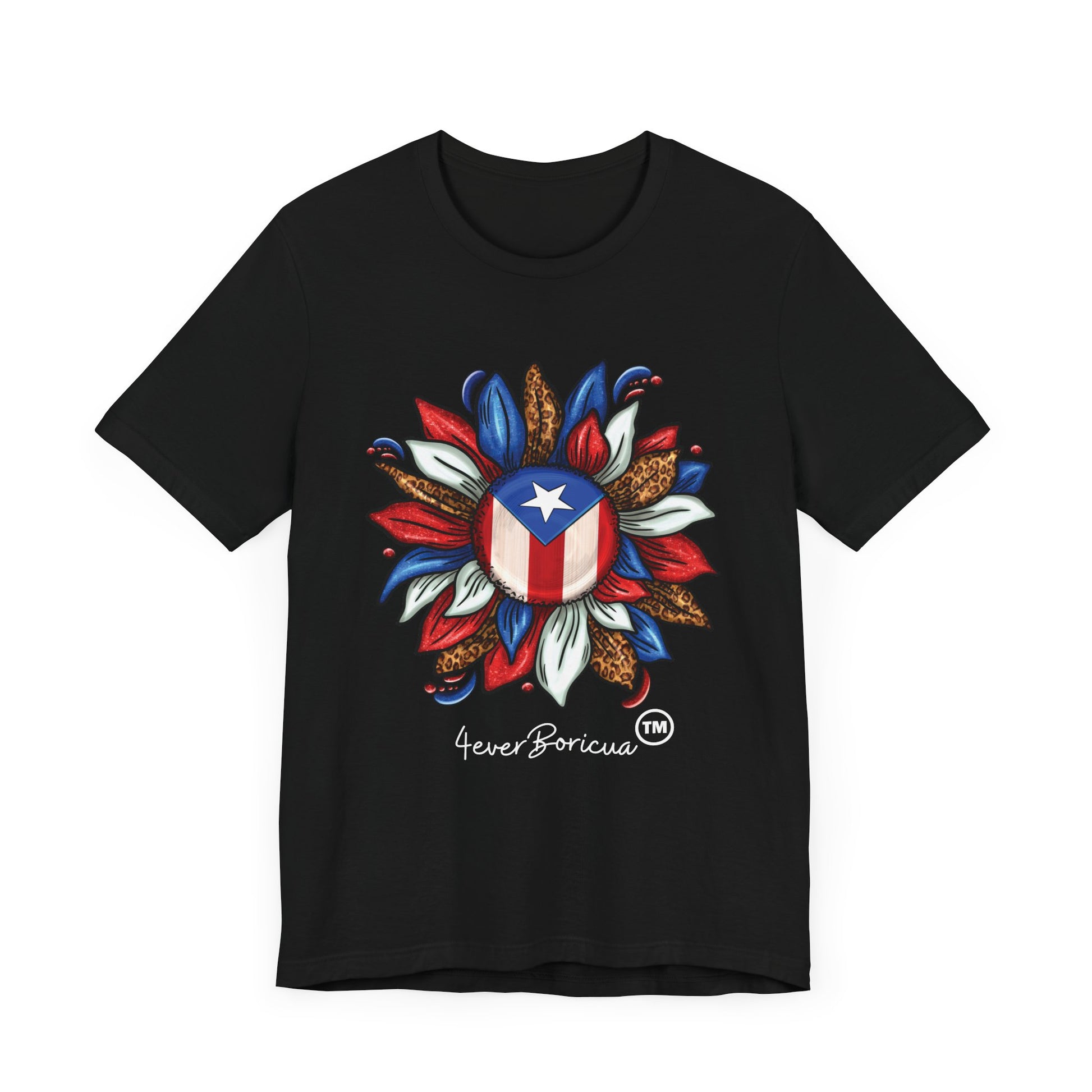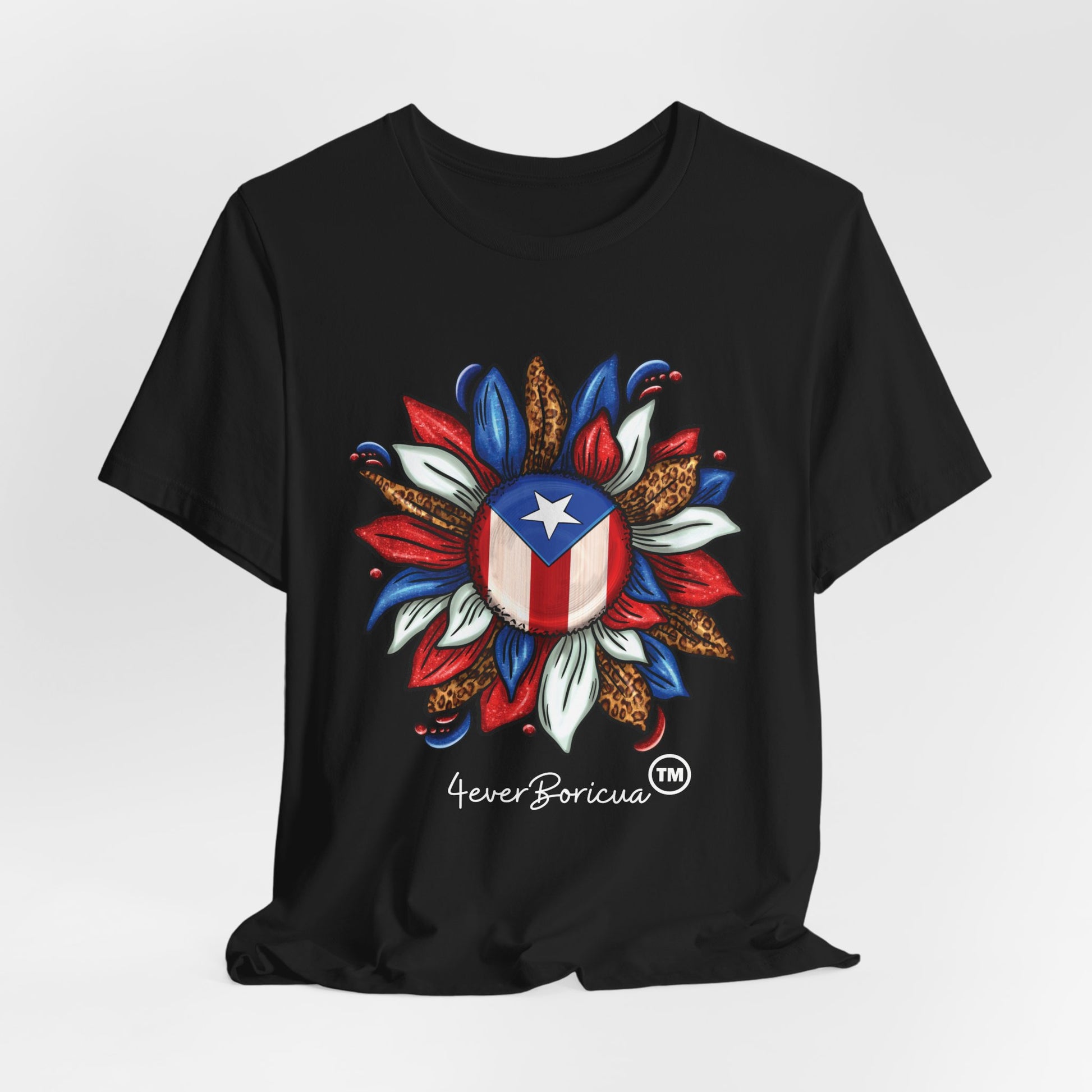 CAMISETA PR UNISEX PUERTO RICAN BLOOMING FLAG T-SHIRT Black | 4EVERBORICUA