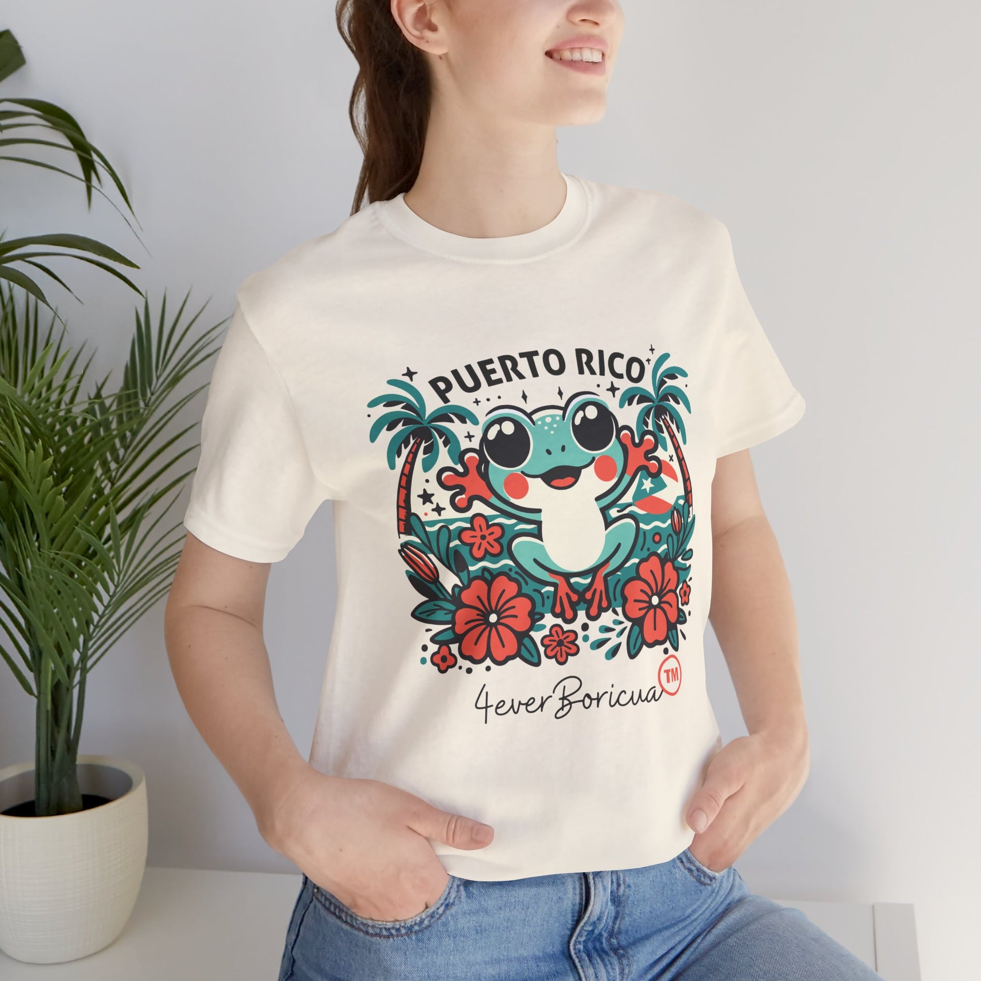 Camiseta de Puerto Rico diseño original inspirado en el coquí. Excelente calidad, suaves, cómodas y no requieren planchado. Unisex y disponibles hasta tallas plus. Si deseas este diseño en tallas para bebés, infantes o jóvenes, contáctanos. ¡Envío GRATIS a Puerto Rico y Estados Unidos!