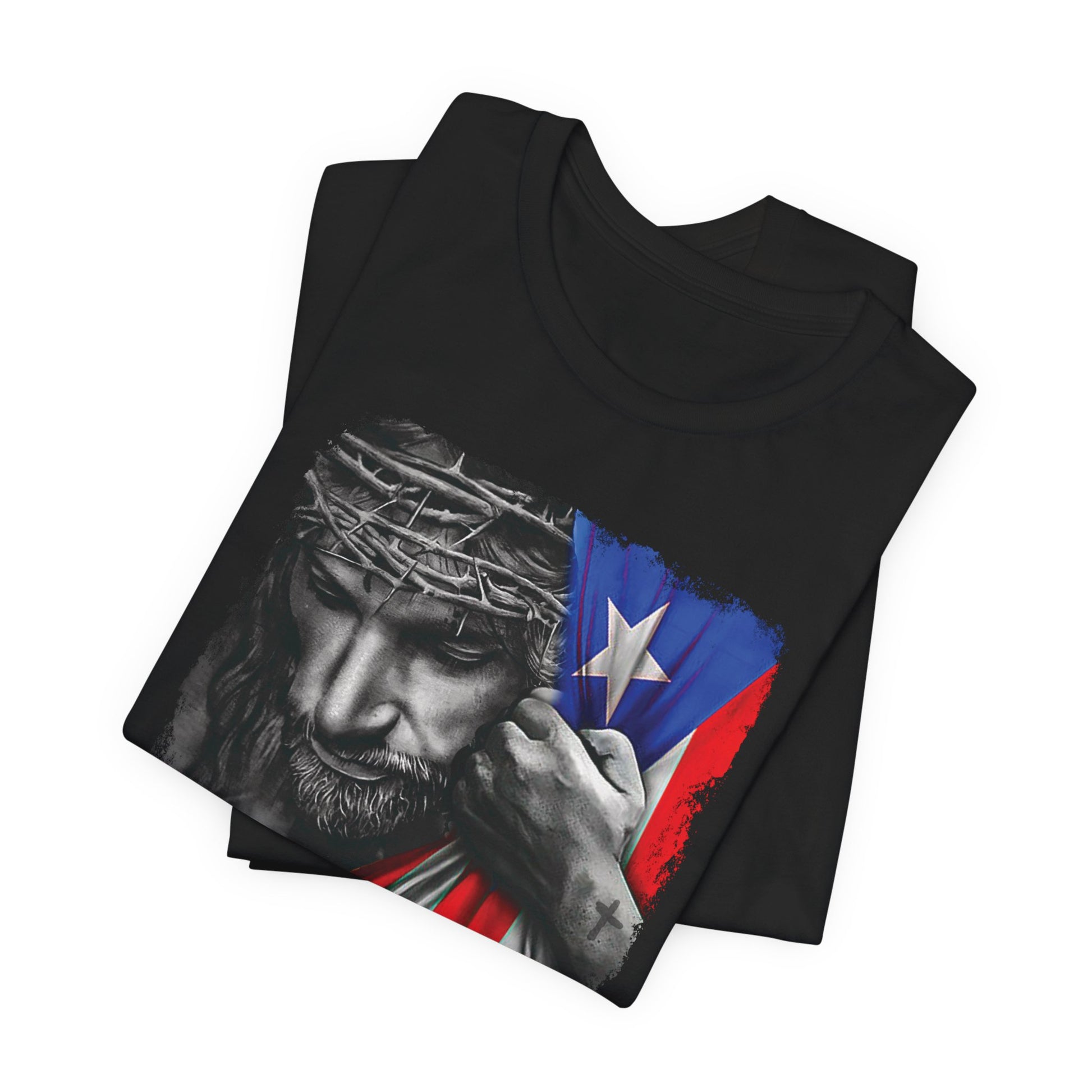 CAMISETAS PR UNISEX JESUS CON BANDERA BORICUA T-SHIRT | 4EVERBORICUA