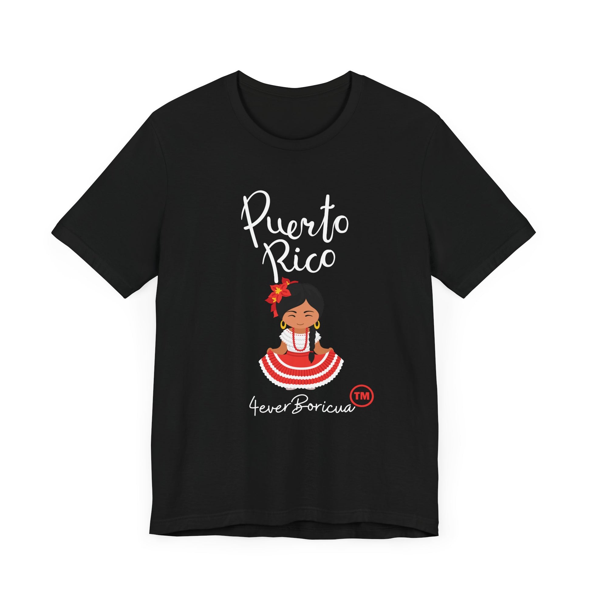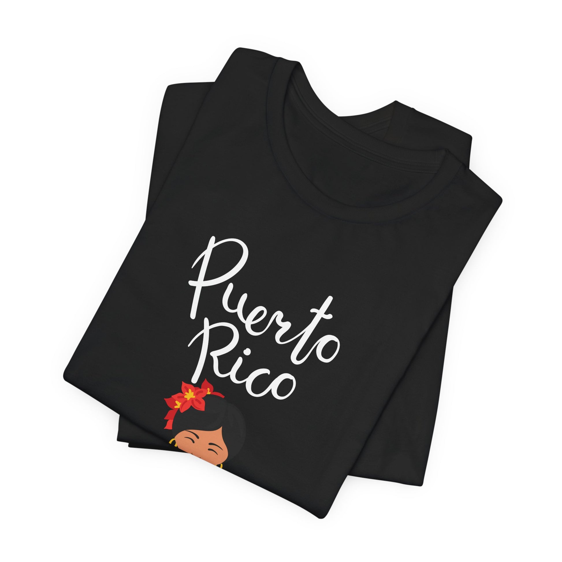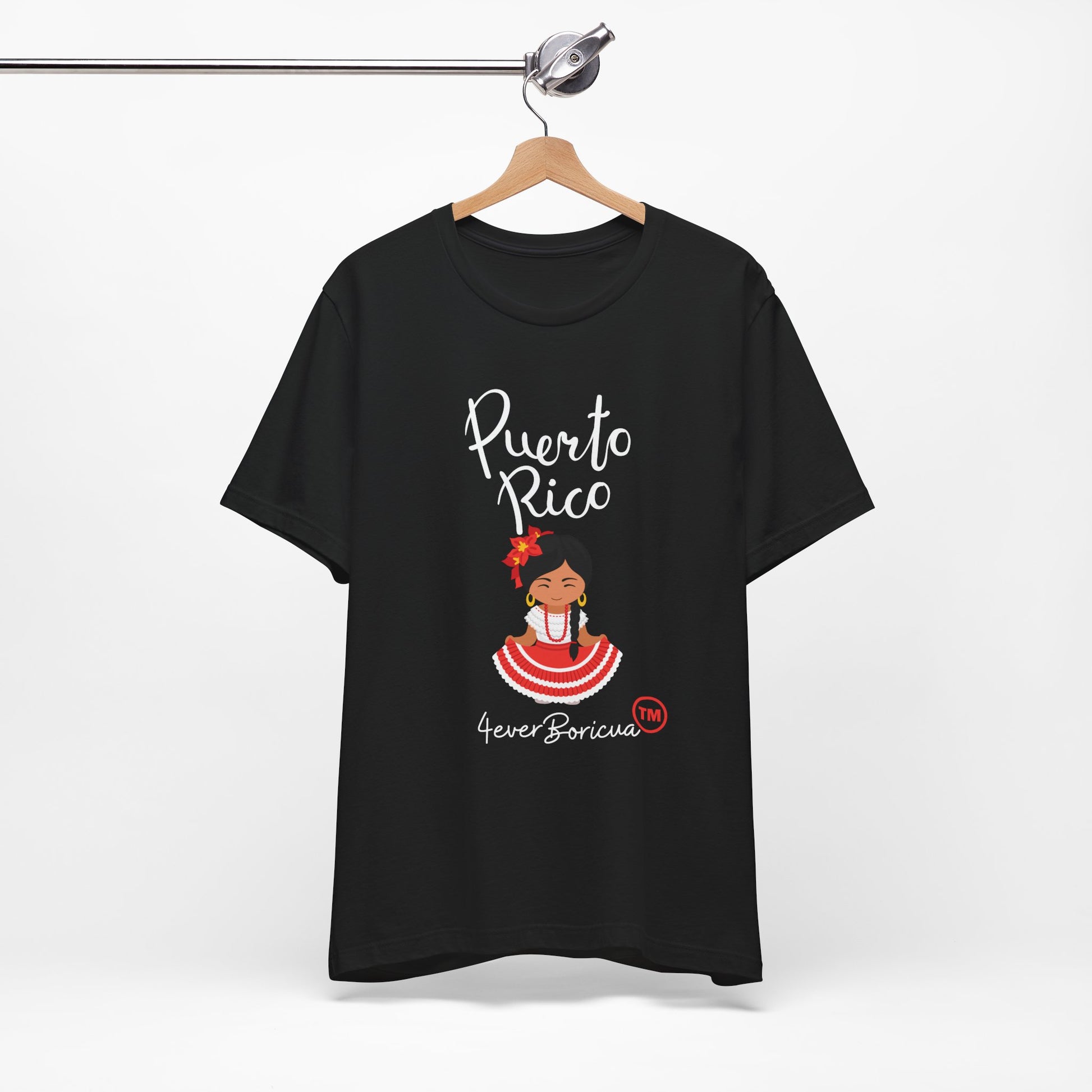 Camiseta de Puerto Rico diseño original inspirado en la Jibarita Puertorriqueña. Excelente calidad, suaves, cómodas y no requieren planchado. Unisex y disponibles hasta tallas plus. Si deseas este diseño en tallas para bebés, infantes o jóvenes, contáctanos. ¡Envío GRATIS a Puerto Rico y Estados Unidos!