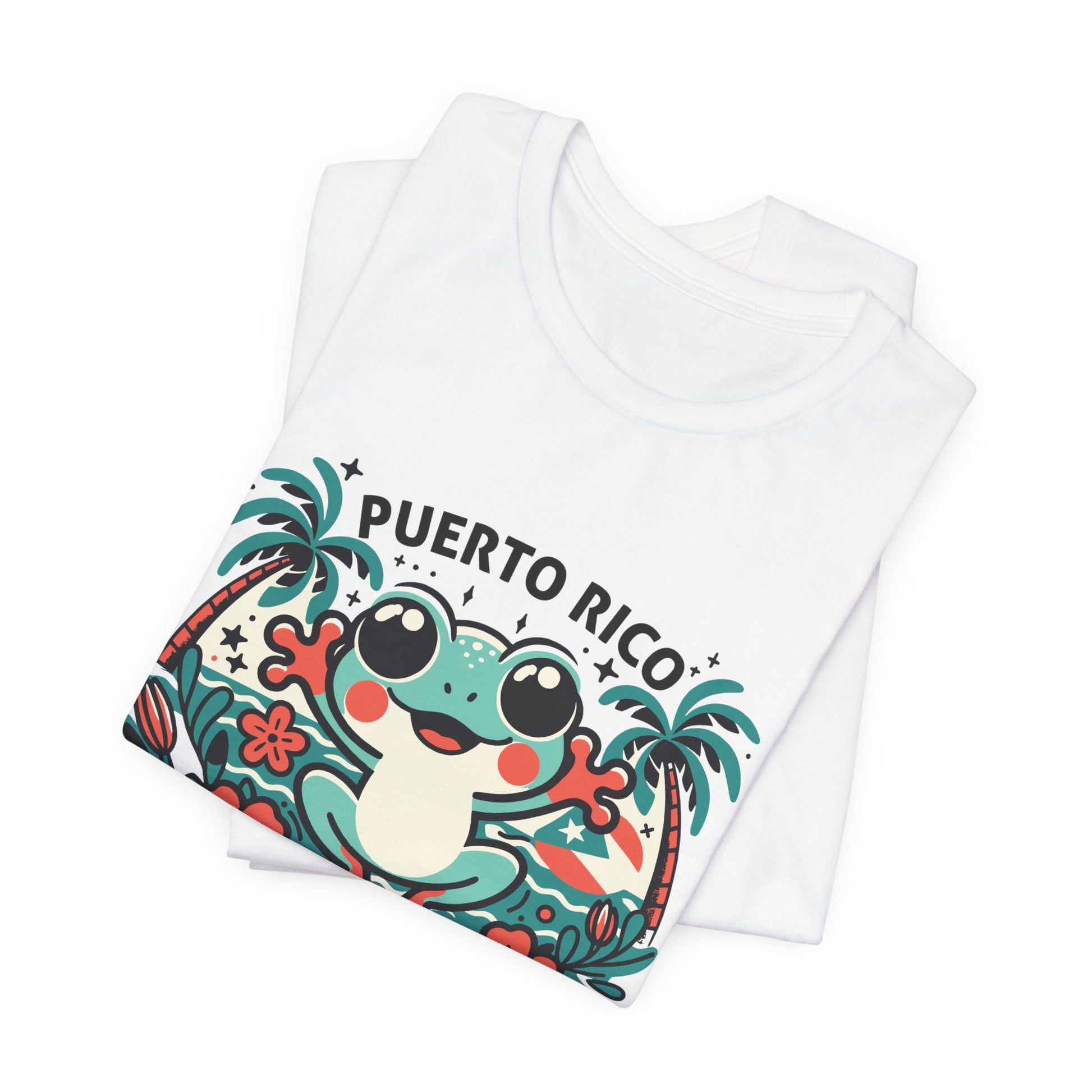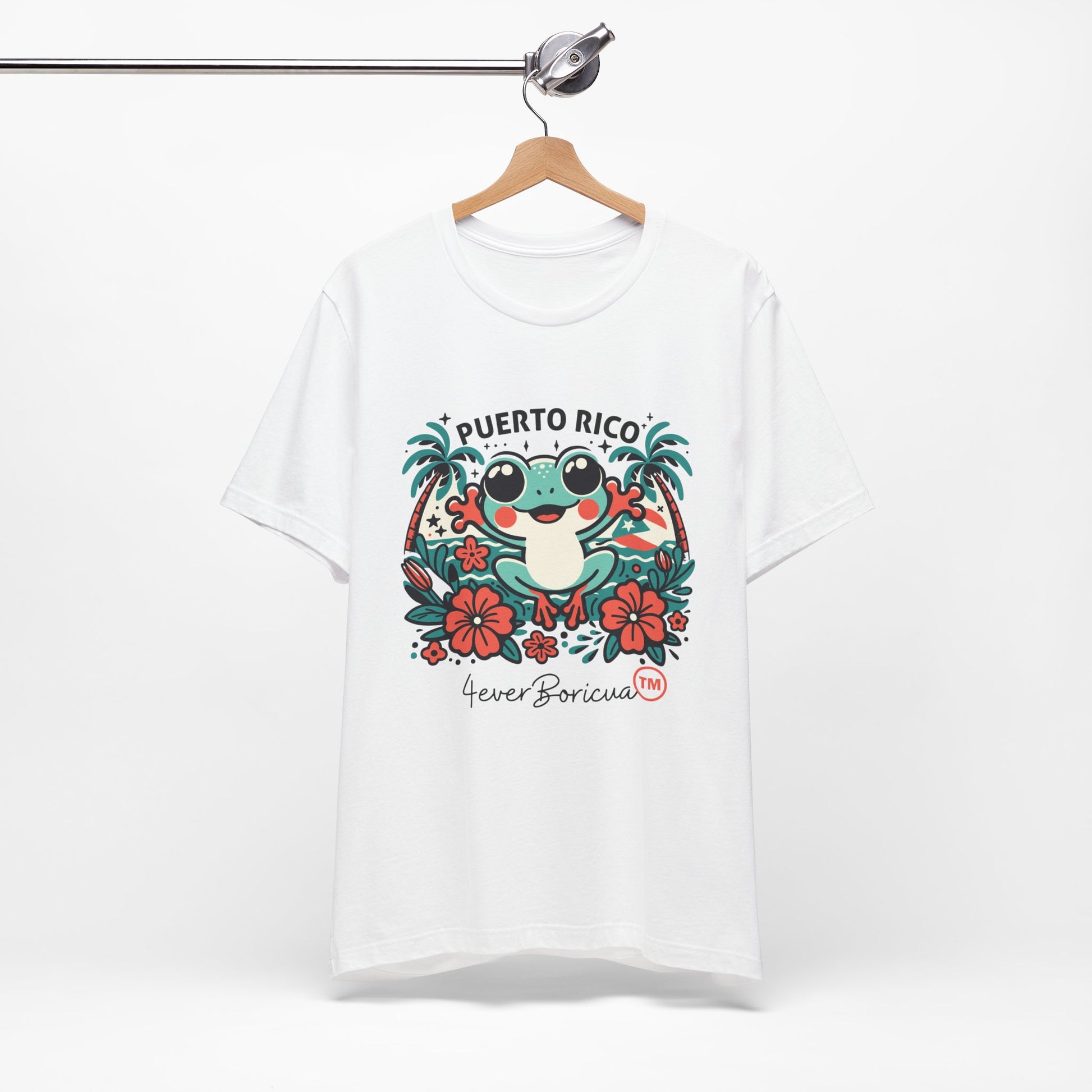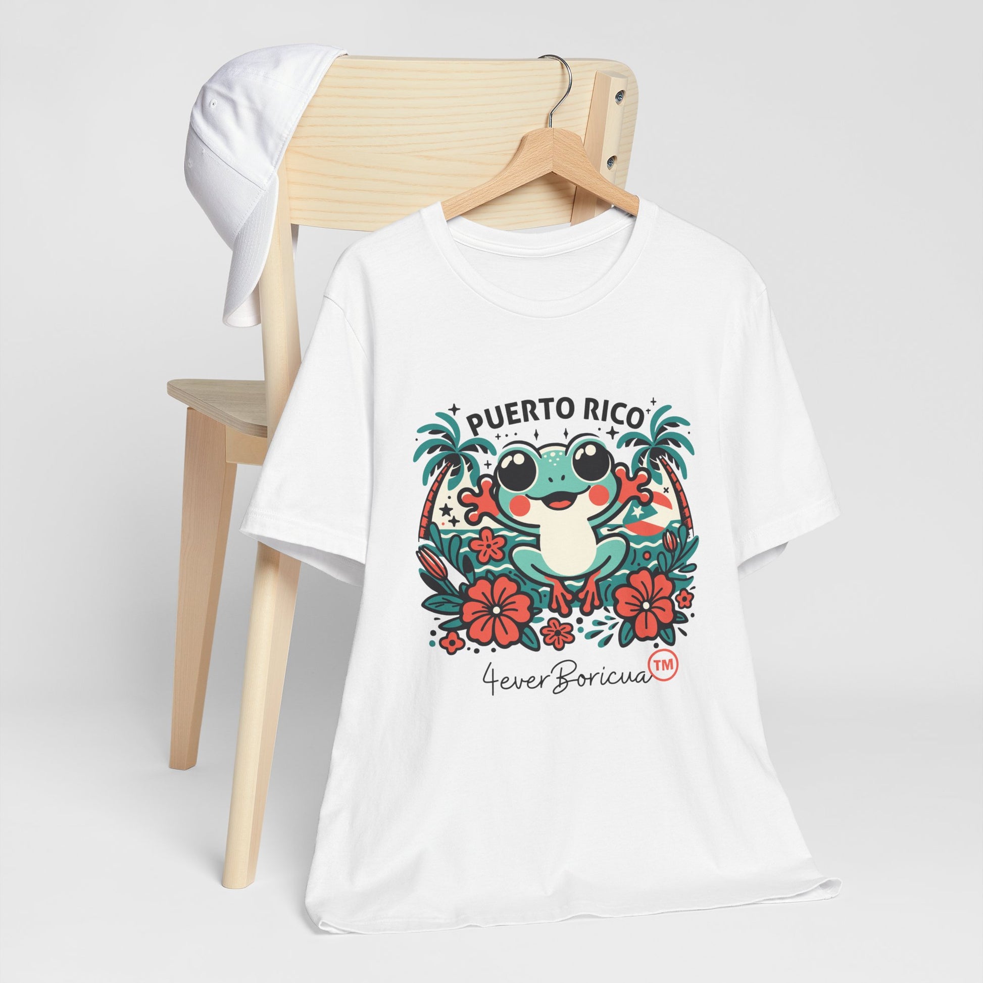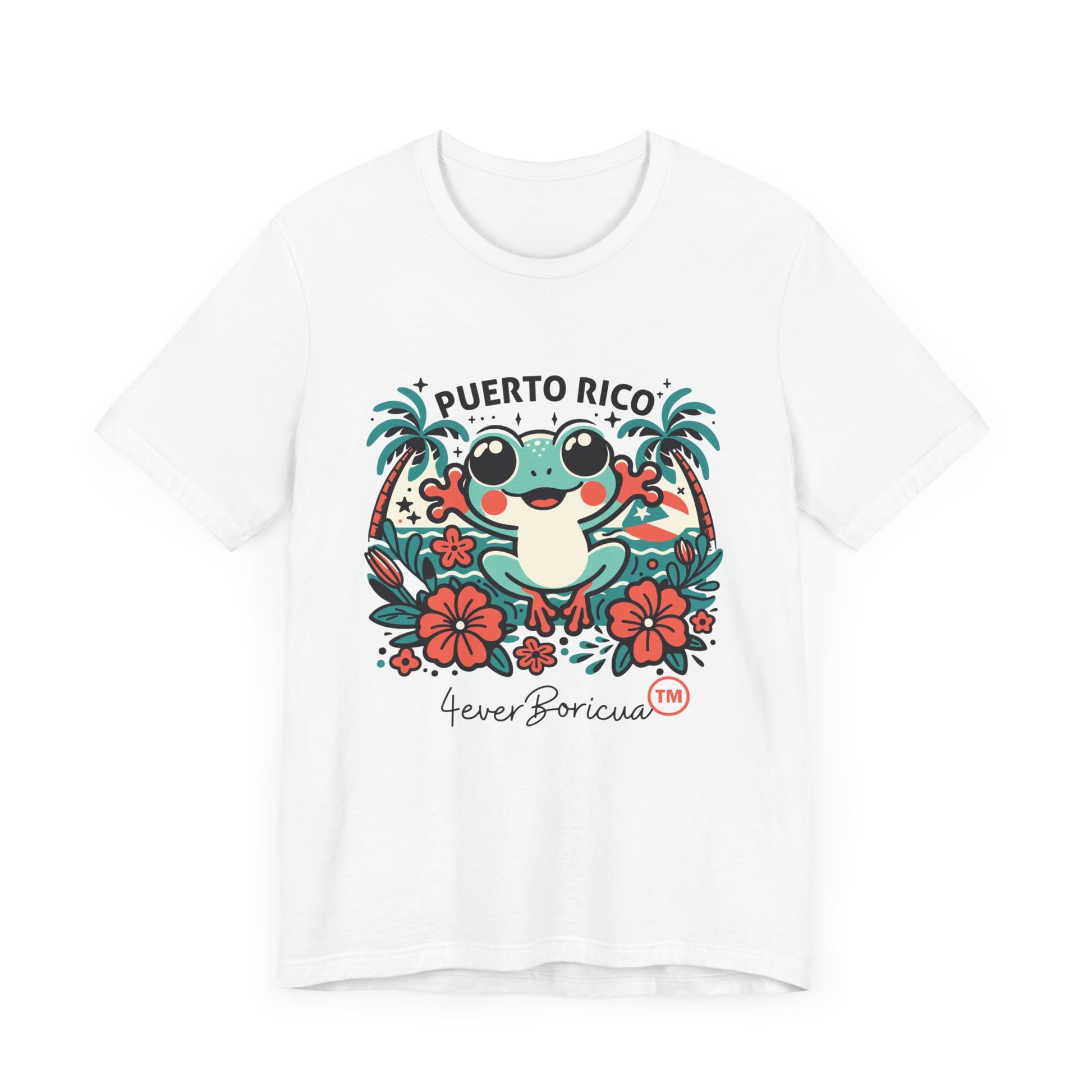 Camiseta de Puerto Rico diseño original inspirado en el coquí. Excelente calidad, suaves, cómodas y no requieren planchado. Unisex y disponibles hasta tallas plus. Si deseas este diseño en tallas para bebés, infantes o jóvenes, contáctanos. ¡Envío GRATIS a Puerto Rico y Estados Unidos!