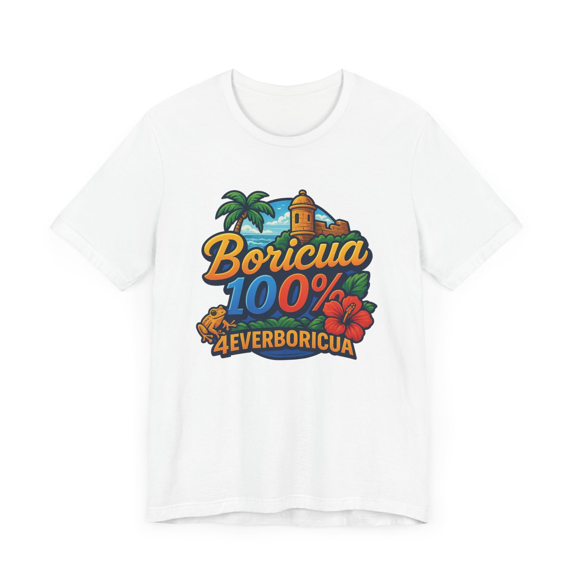 CAMISETAS PR UNISEX BORICUA 100% 4EVERBORICUA SHIRTS | White