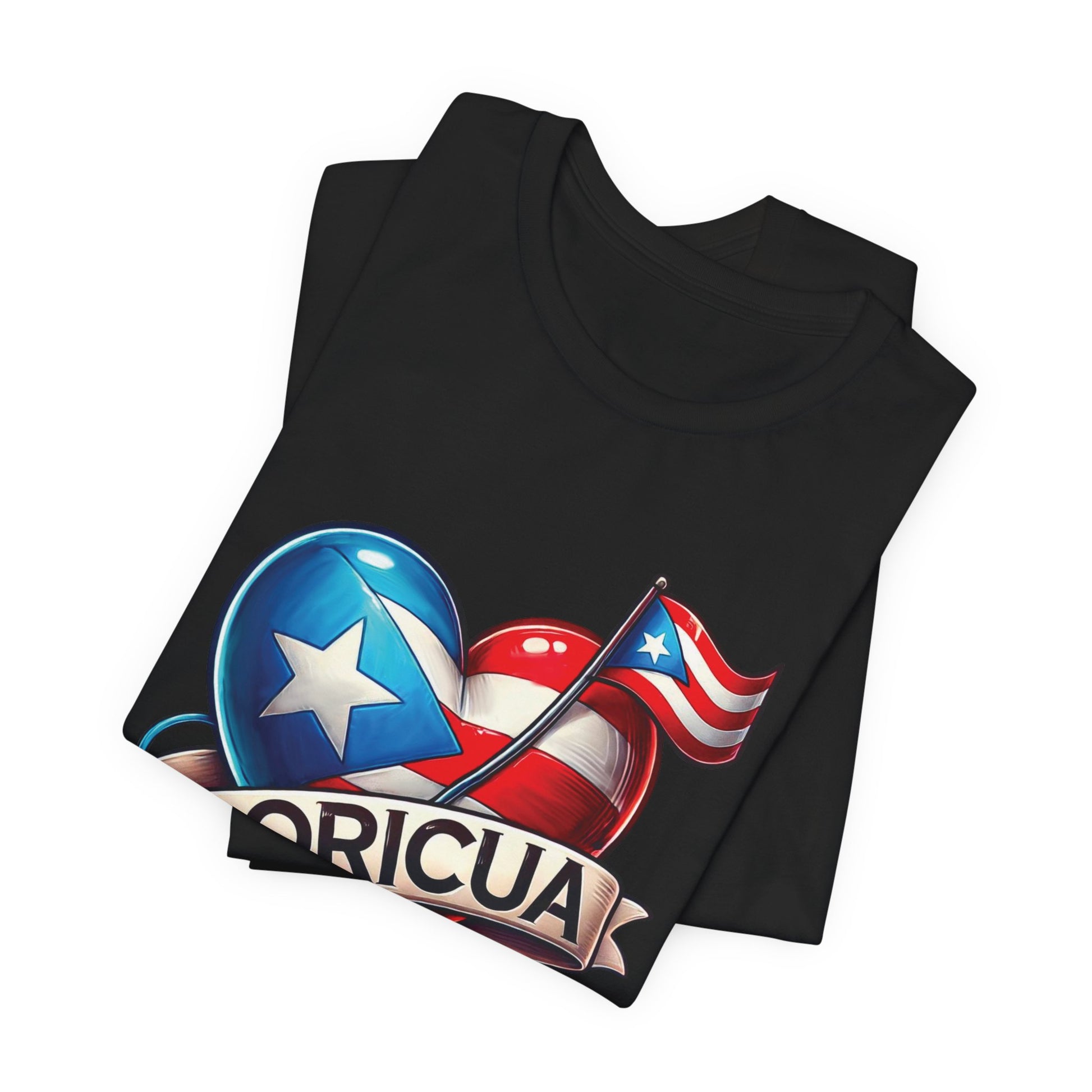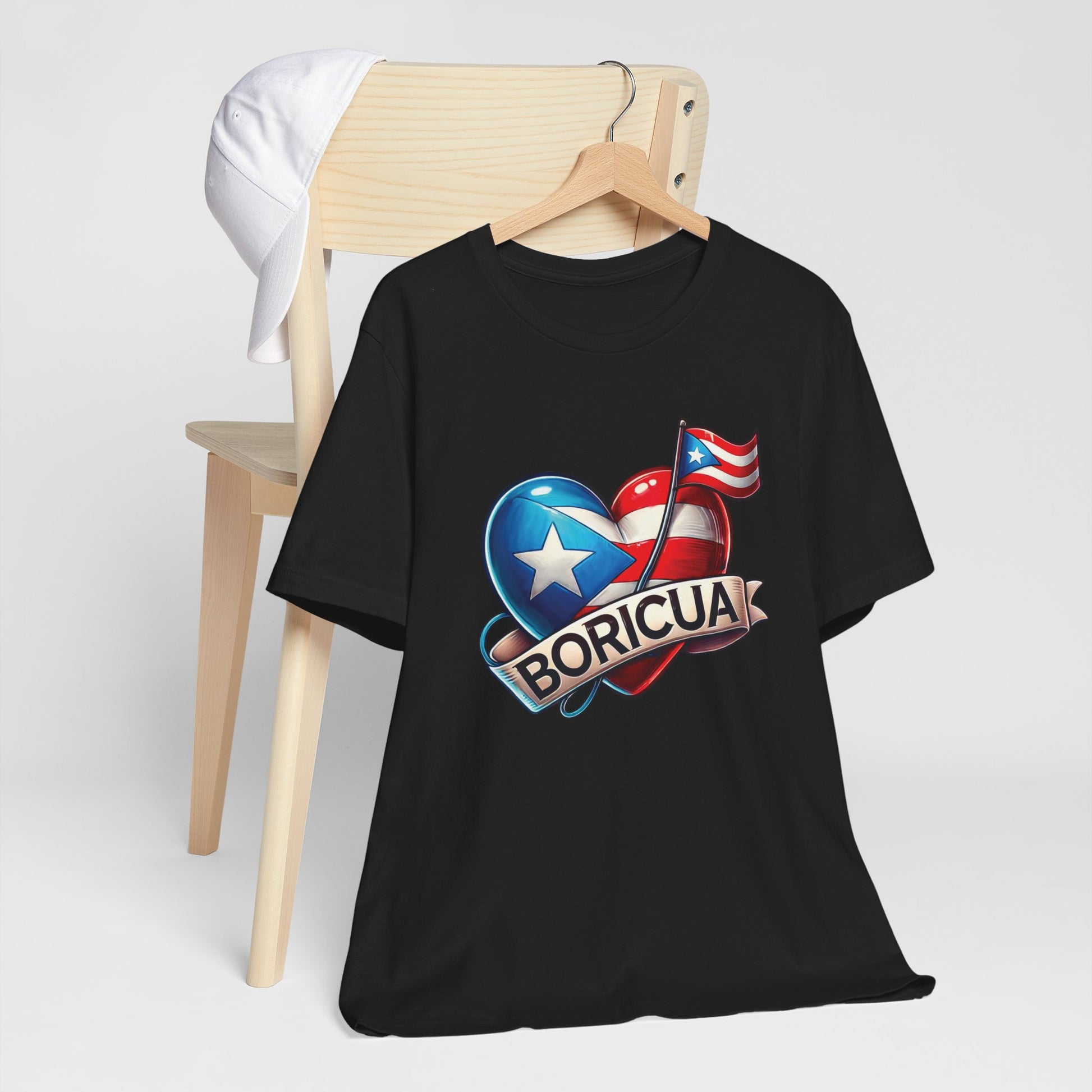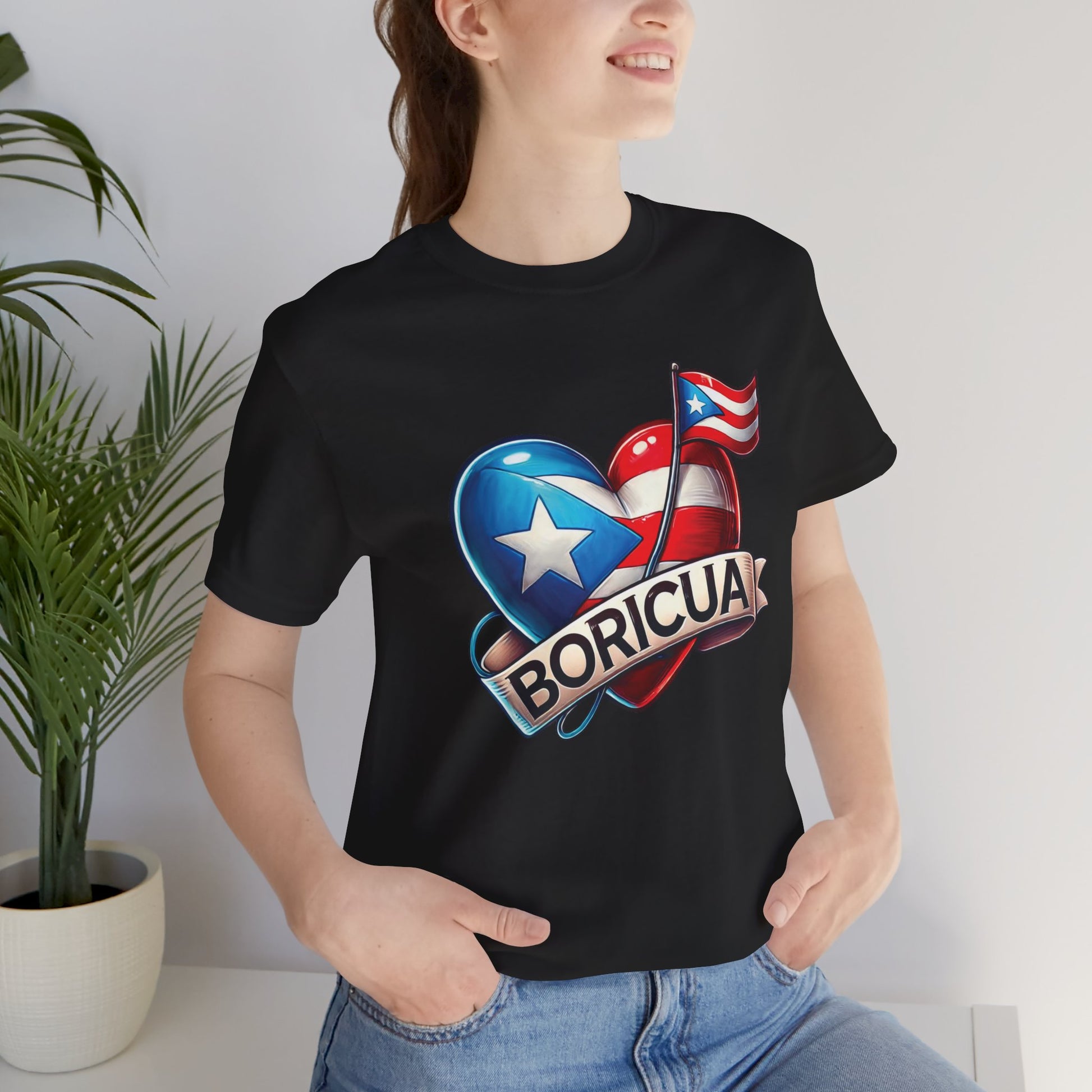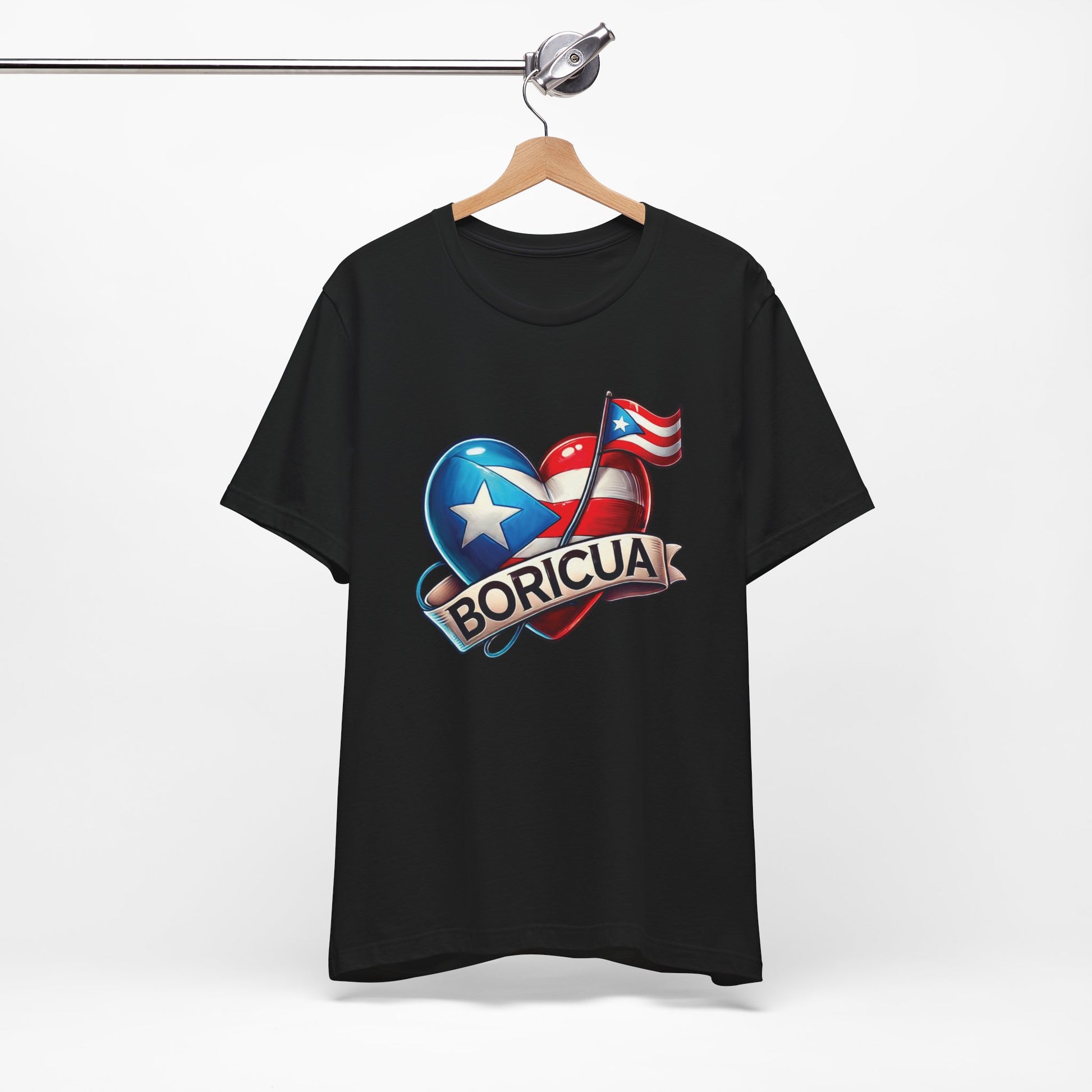 CAMISETAS PR CORAZON Y BANDERA BORICUA SHIRTS NEGRA | 4EVERBORICUA