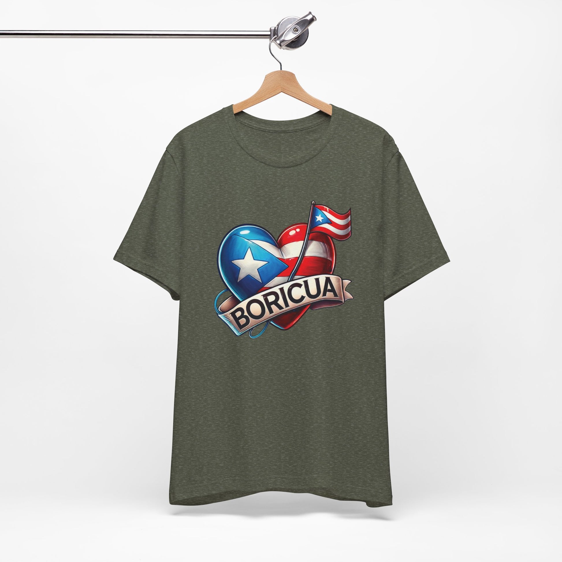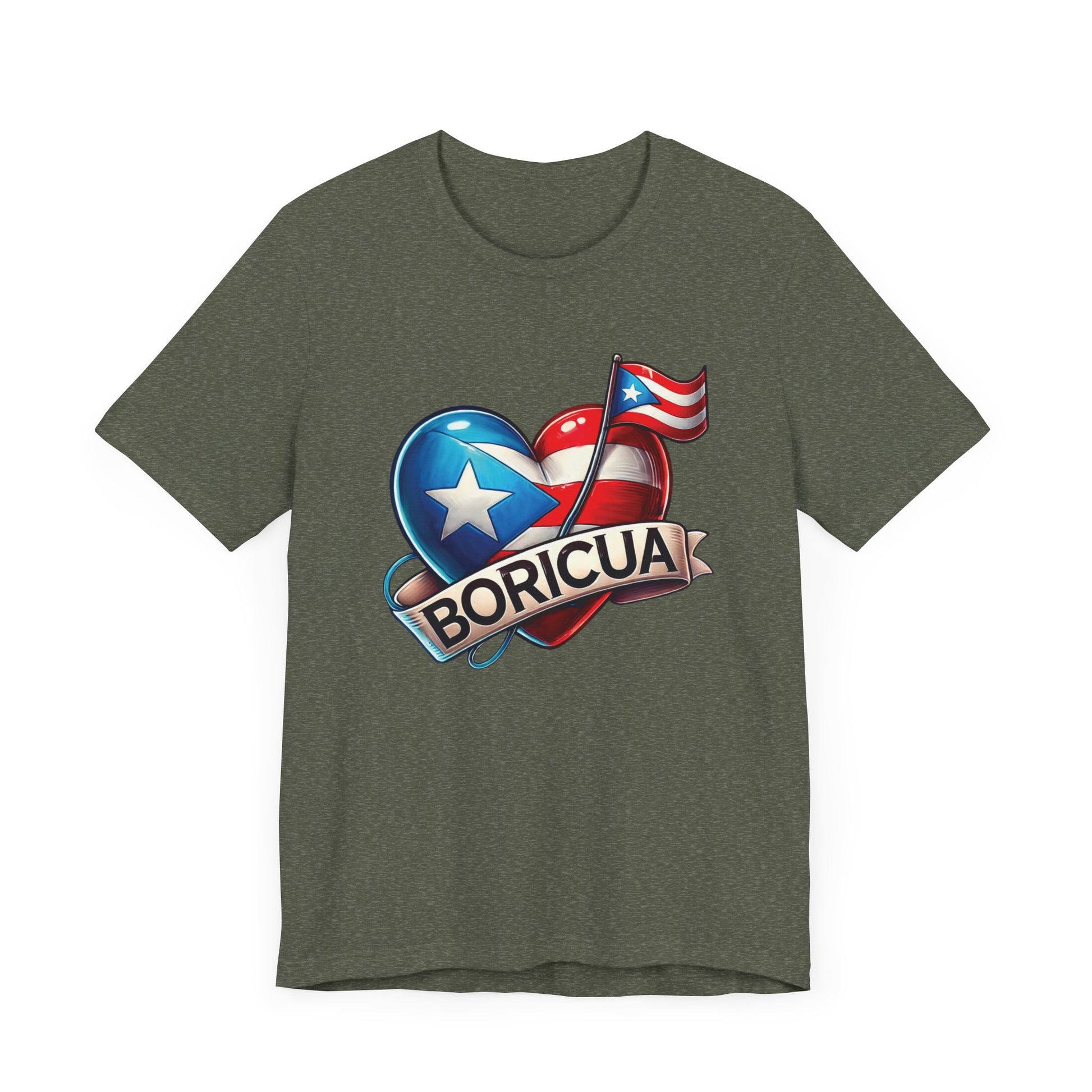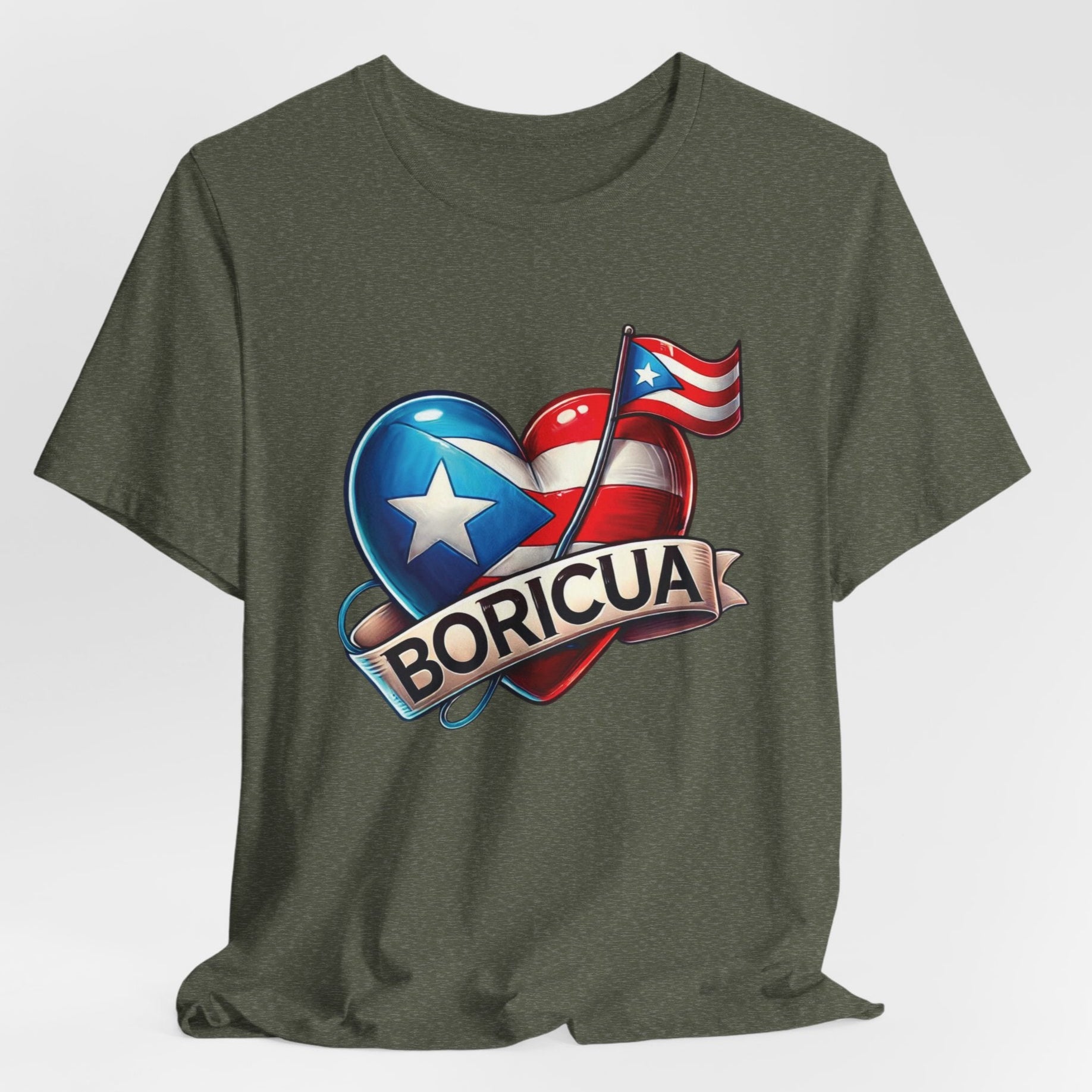 CAMISETAS PR SHIRTS BORICUA HEART & FLAG Military Green | 4EVERBORICUA