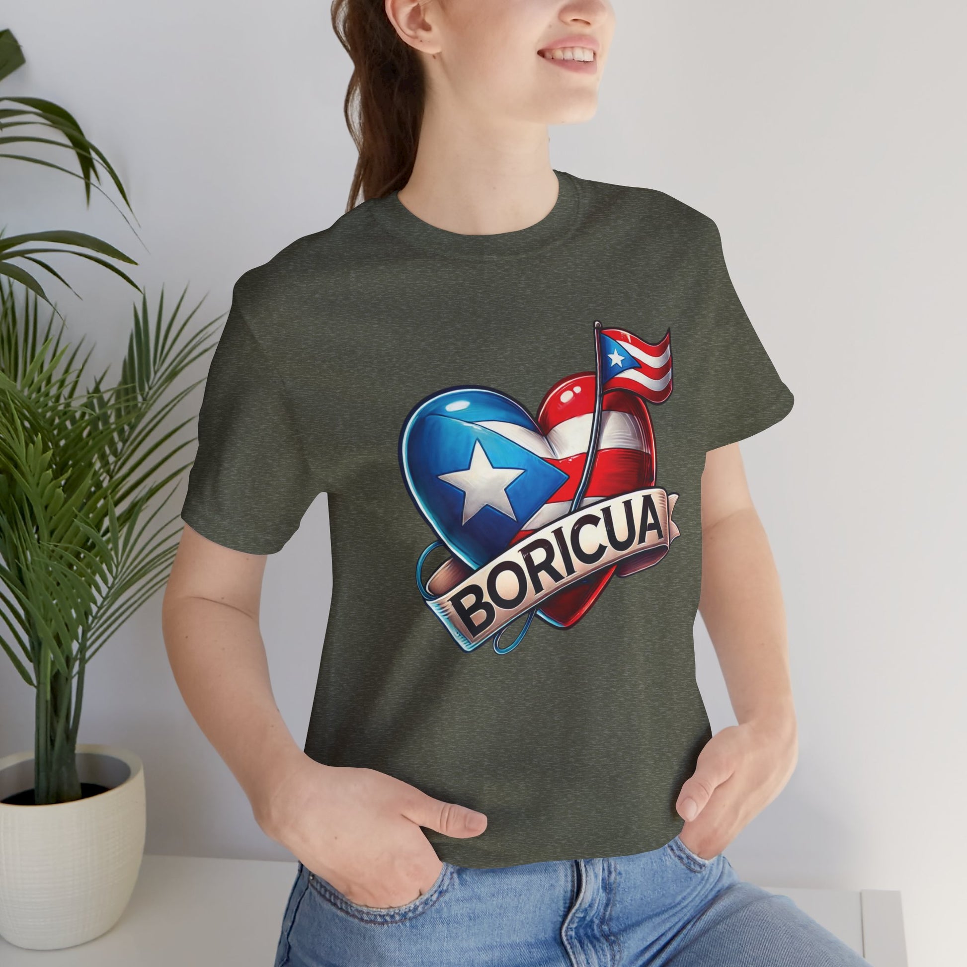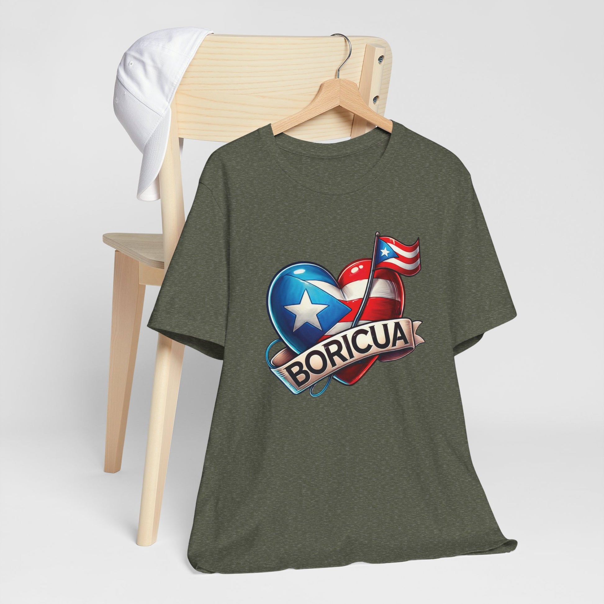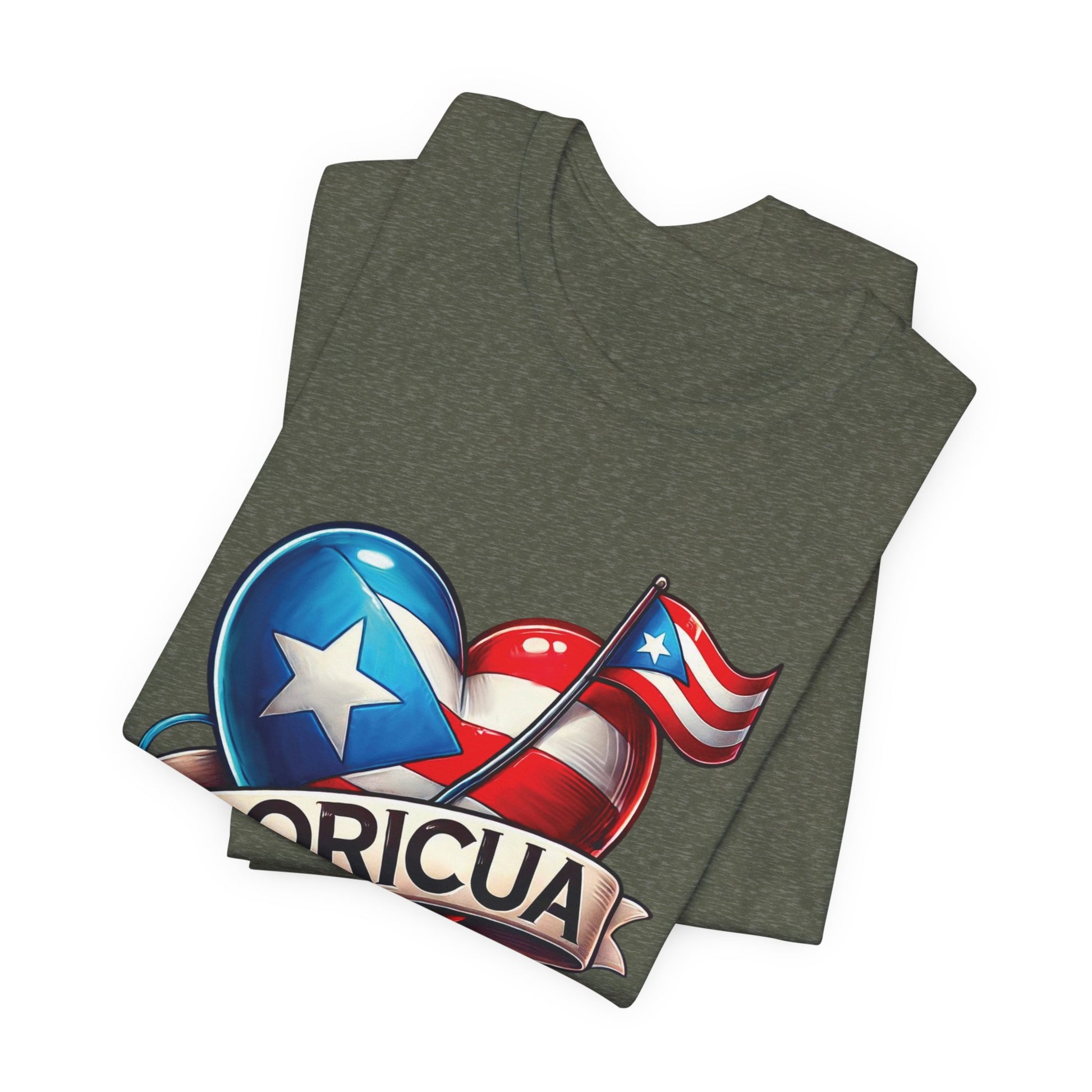 CAMISETAS PR SHIRTS BORICUA HEART & FLAG Military Green | 4EVERBORICUA