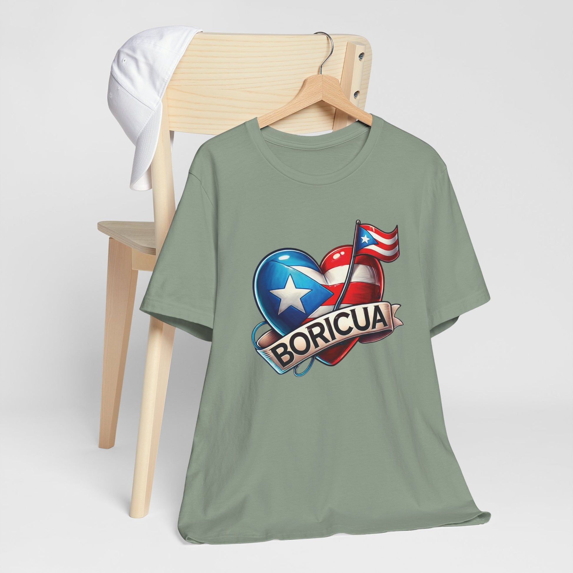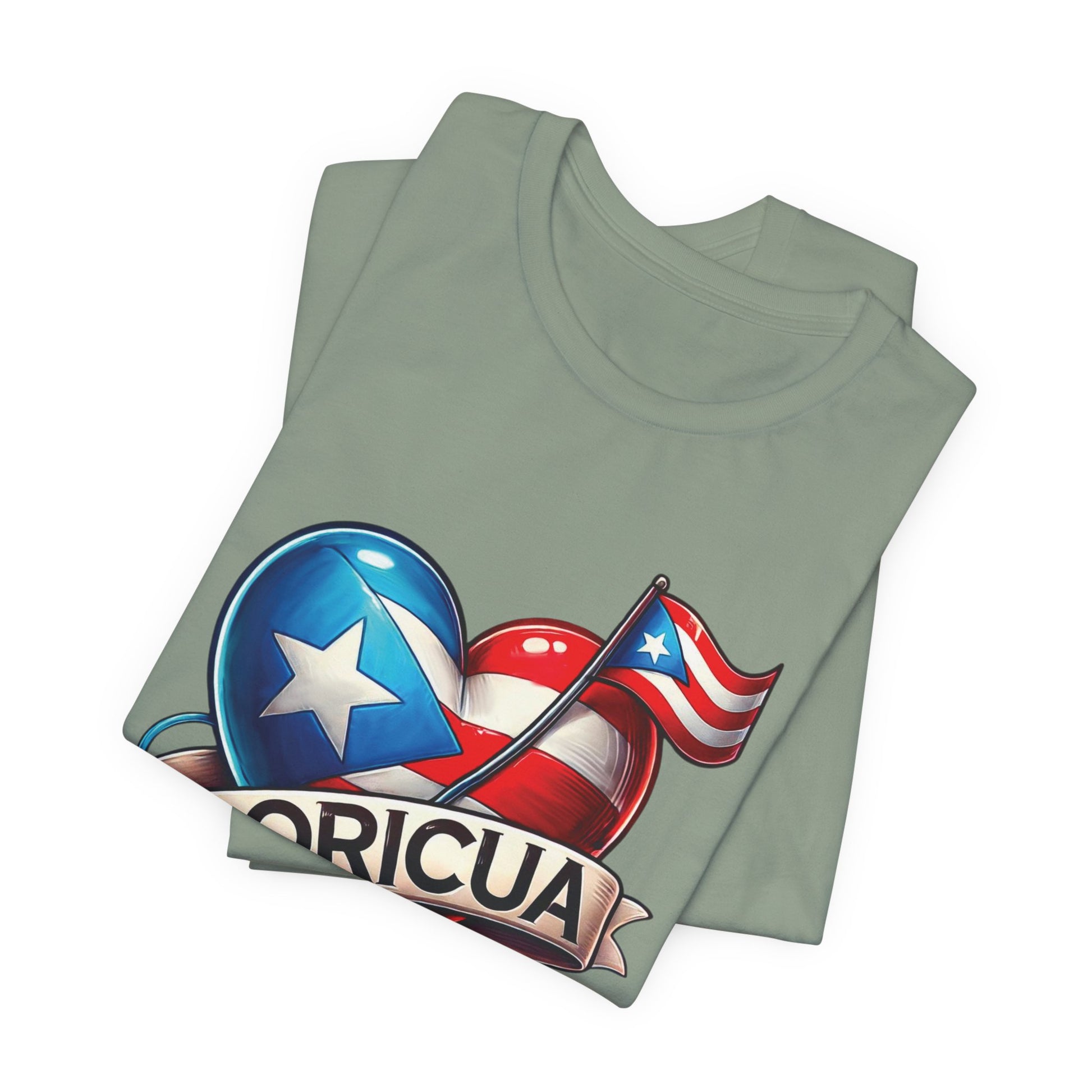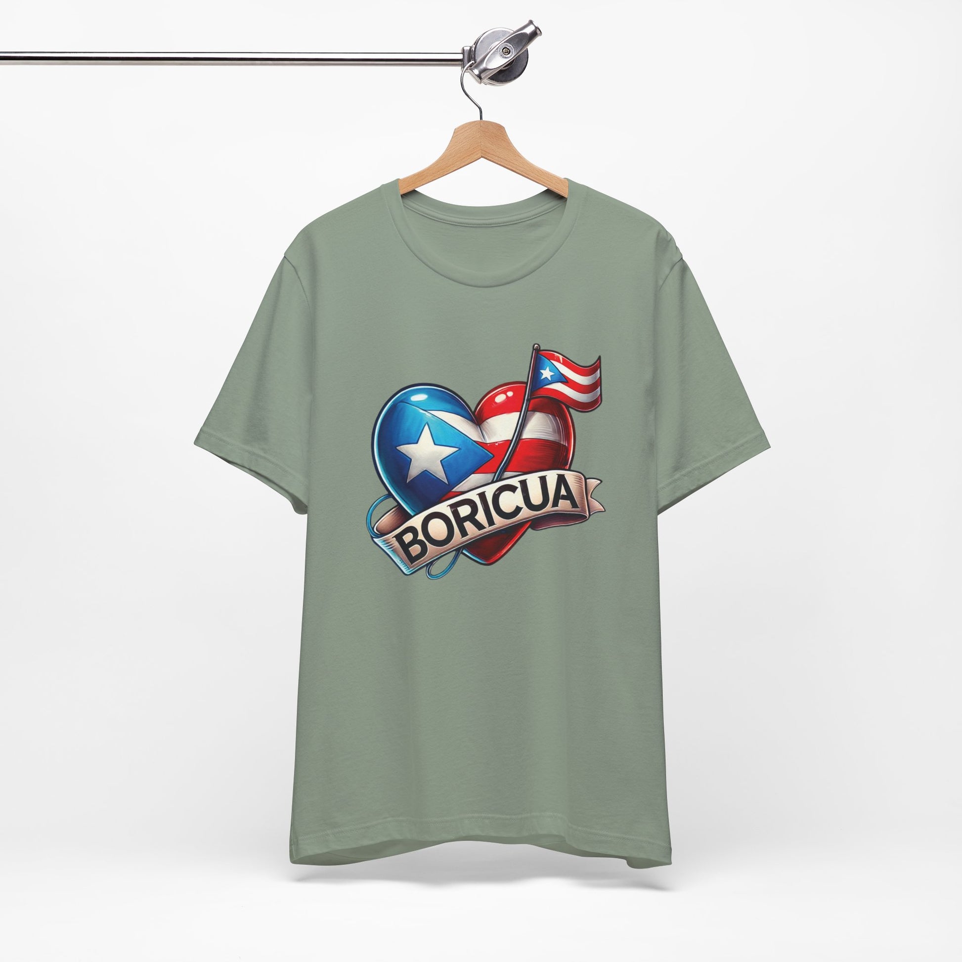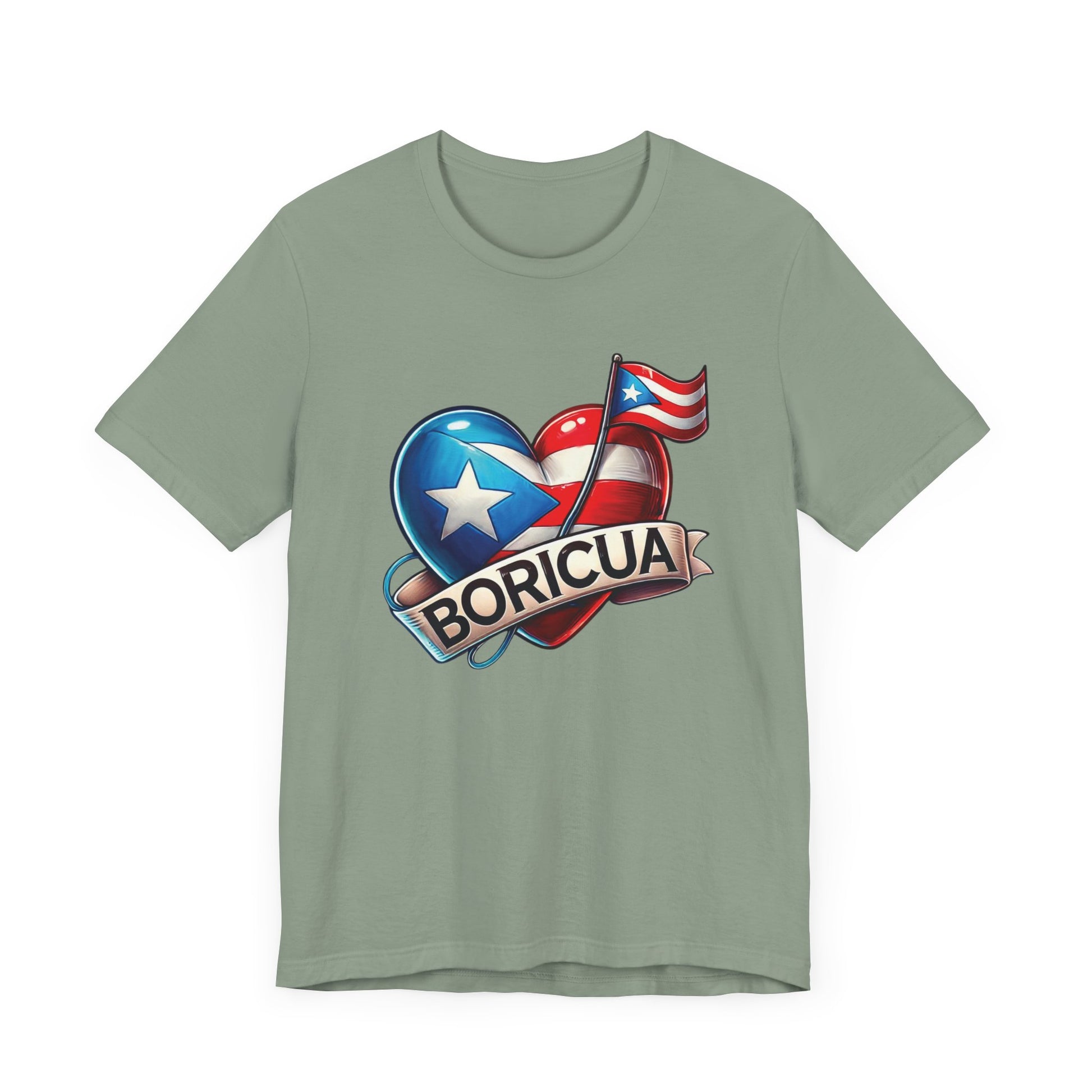 CAMISETAS PUERTO RICO PR SHIRTS BORICUA BANDERA CORAZÓN Sage | 4EVERBORICUA