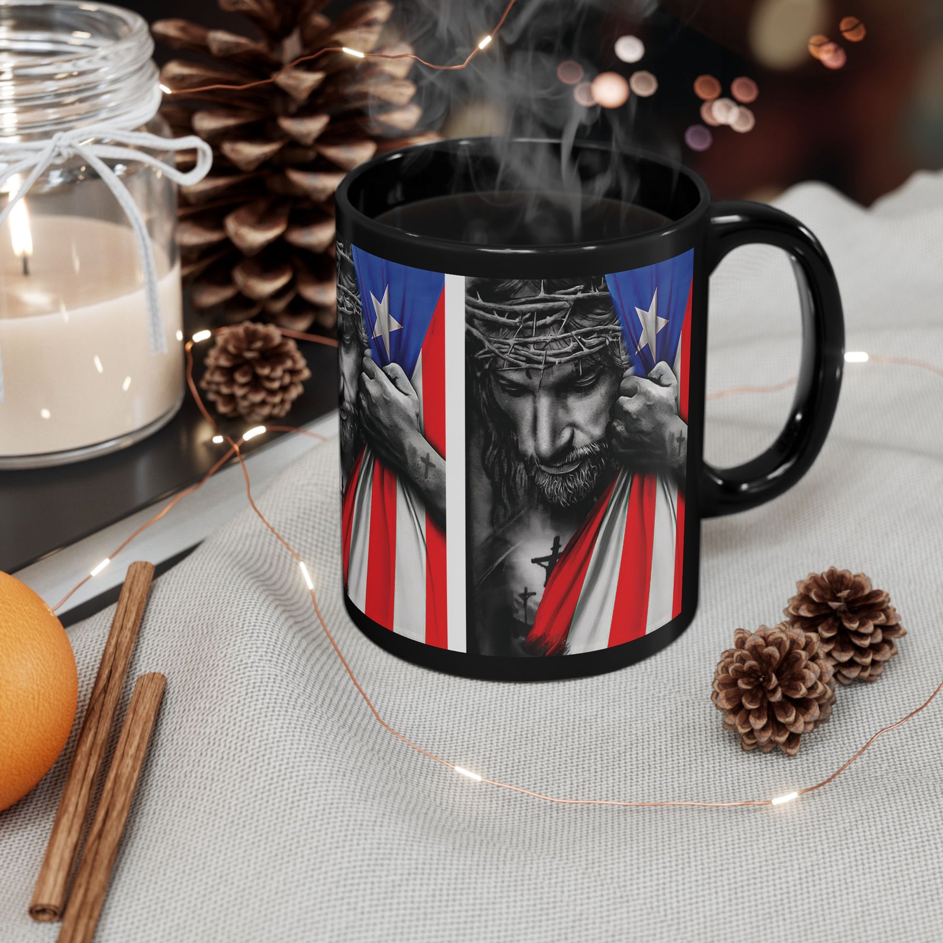TAZA JESÚS CON BANDERA PUERTO RICO Cup Coffee Mug | 4EVERBORICUA